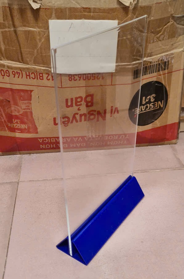 - Thiết kế: Menu mica chân tam giác có tháo rời, rất dễ dàng tháo lắp để chùi rửa vệ sinh, và để tờ giấy vào bên trong.
